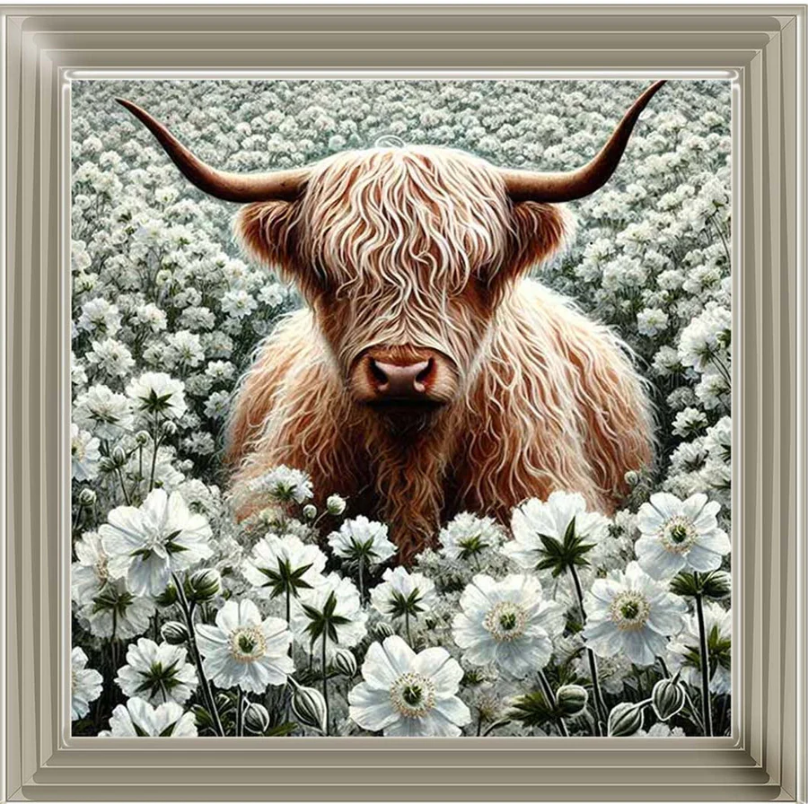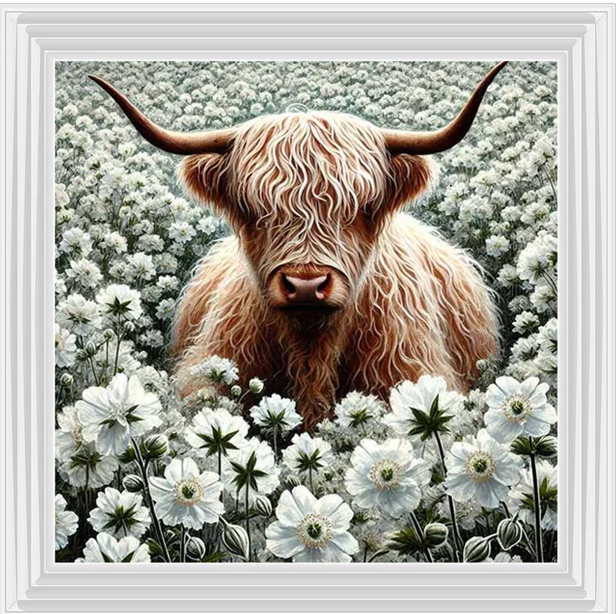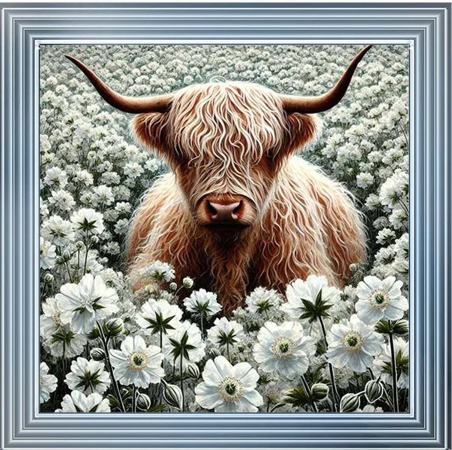 Grazing Bull in white Flowers Picture